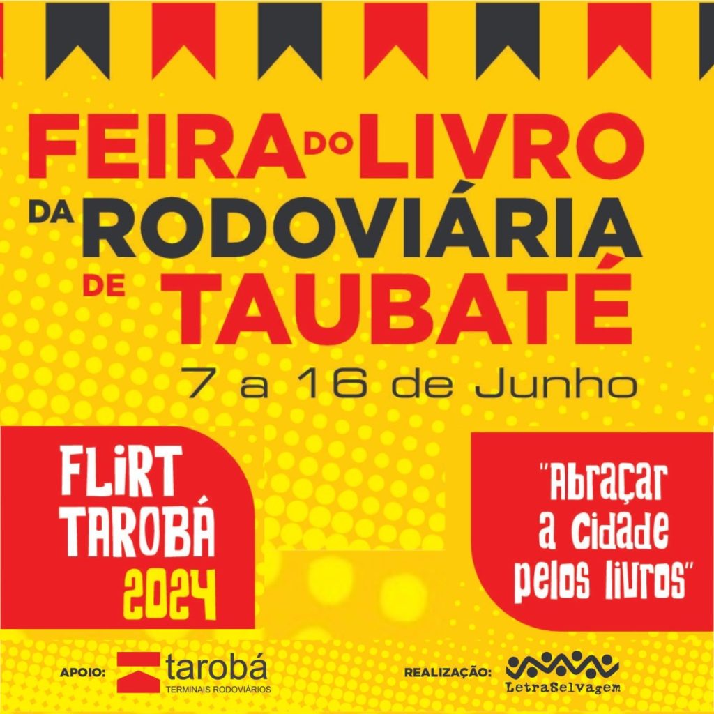 De 07 a 16 de junho de 2024, com entrada gratuita, todos os dias de 9h às 20h, acontece a primeira edição da FLIRT – Feira do Livro da Rodoviária de Taubaté ( @flirttaroba ), que será realizada na Rodoviária Nova de Taubaté, que fica na Rua Benedito da Silveira Moraes, s/n, Jardim Ana Emília