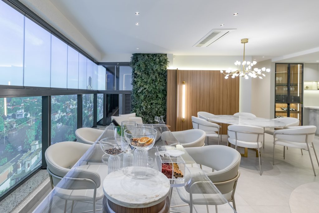 Os ambientes, embora amplos, pedem recursos minimalistas. “Essa tendência valoriza muito a qualidade de vida, o que se reflete nas escolhas para a decoração, em que menos é mais. A prioridade é: móveis de design aconchegantes e funcionais”, afirma. O objetivo é incorporar uma atmosfera clean, harmoniosa e livre de desordem, enfatizando o aconchego e o conforto.