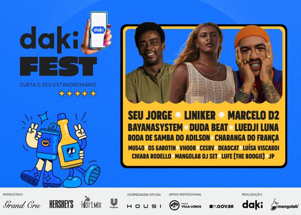 Desenvolvido em parceria com a Mangolab, laboratório cultural que conecta público, marcas e música, o festival reunirá artistas de diferentes categorias da música nacional, passando por estilos como Nova MPB, Samba e Rap. “Nosso intuito é proporcionar momentos extraordinários de diversão, gastronomia e muita música”, destaca Natália Melo, Diretora de Brand Marketing da Daki.