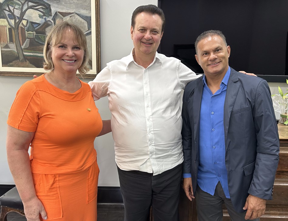 Legenda: Ana Perugini, Kassab e vereador Nego, de Hortolândia, durante reunião no Palácio dos Bandeirantes