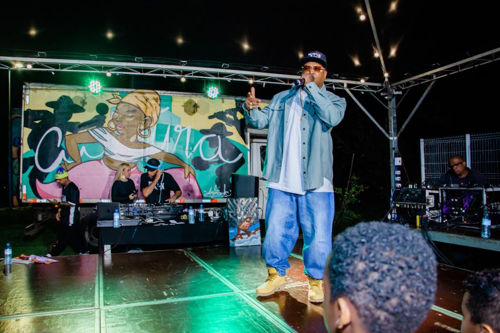E para elevar ainda mais a vibe, o público conferiu o pocket show de Afro-X. O artista é um dos principais nomes do rap brasileiro. No início dos anos 2000, conquistou reconhecimento, ao lado do parceiro Dexter, no grupo 509-E.