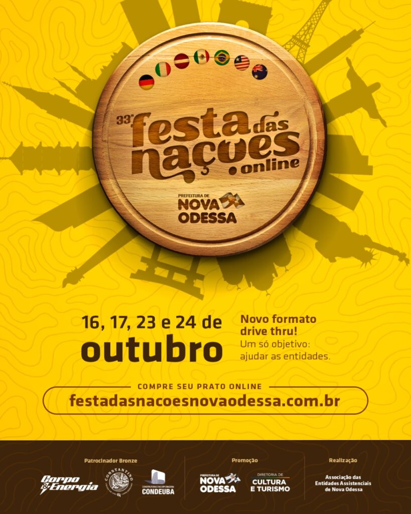 O calendário da 33ª Festa das Nações de Nova Odessa, que também estará disponível no “hotsite”, começa já no próximo dia 16 de outubro. Como sempre, 100% da renda arrecadada será destinada para as entidades sociais participantes – incluindo AAANO (Associação Amigos dos Animais de Nova Odessa), ABCL (Associação Brasileira de Cultura Leta), APAE, Comunidade Geriátrica de Nova Odessa, Lions Clube Nova Odessa, SOS (Serviço de Orientação e Solidariedade) e Clube Rotary Nova Odessa.