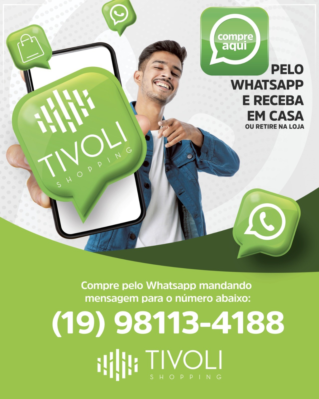Os consumidores do Tivoli Shopping poderão comprar também pelo WhatsApp (19) 98113-4188, a partir desta quinta-feira (16), através do aplicativo vend.AÍ, que integra o WhatsApp do shopping com cada vendedor das lojas. O lançamento inovador facilitará o acesso às ofertas da campanha ‘Black Week’ e também do período natalino.