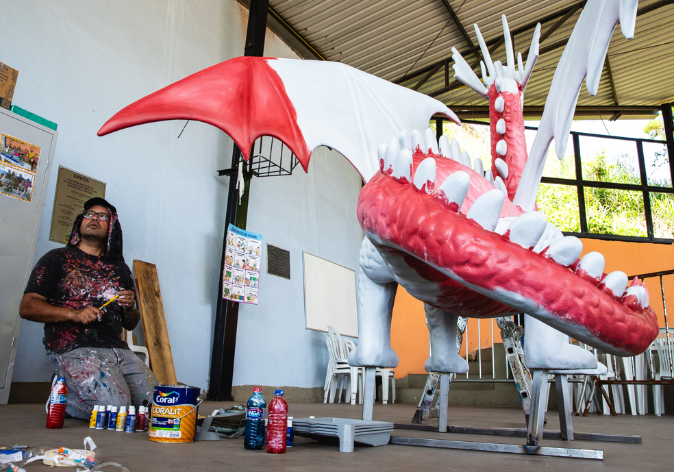 As esculturas a serem pintadas têm a forma de animais que fazem analogia a diferentes tipos de startups: Tikka vai pintar a zebra e Galo é responsável pelo dragão