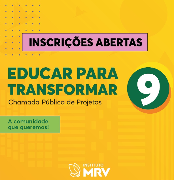O Instituto MRV, braço social do grupo MRV&CO, prorroga as inscrições do seu edital de projetos educacionais. As Organizações da Sociedade Civil (OSC) das cidades de Campinas, Uberlândia, Canoas, João Pessoa, Londrina, Manaus, Porto Alegre, Ribeirão Preto, Salvador e Sorocaba, São Paulo (região de Pirituba) e Rio de Janeiro (bairro Campo Grande), podem inscrever seus projetos até às 17h do dia 6 de outubro.