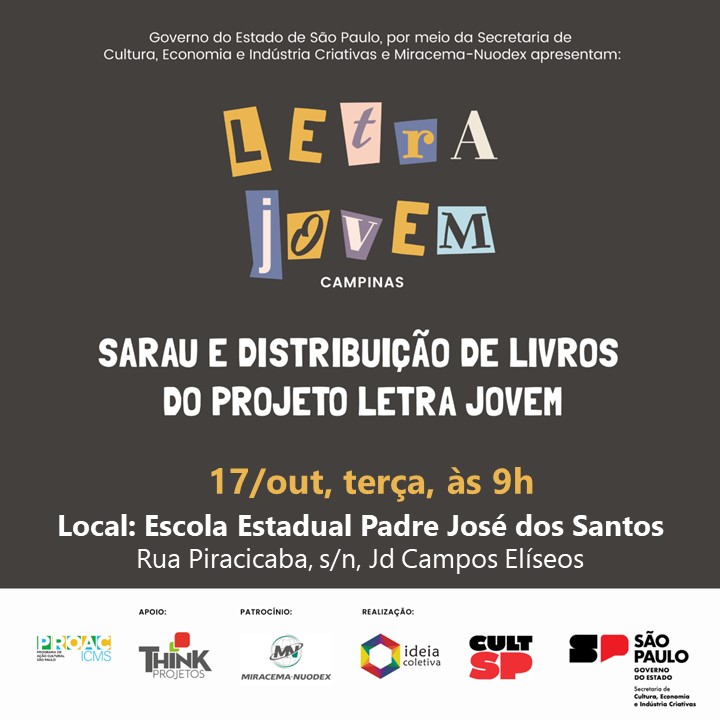 O Projeto Letra Jovem é realizado pelo Instituto Ideia Coletiva, via Programa de Ação Cultural do Estado de São Paulo, ProAC ICMS e recebe o patrocínio da empresa Miracema-Nuodex. Nos meses de abril a agosto, o projeto percorreu as cidades de Porto Ferreira, Salto, Indaiatuba e Campinas beneficiando cerca de 150 jovens com o estímulo à criatividade para a produção de textos.
