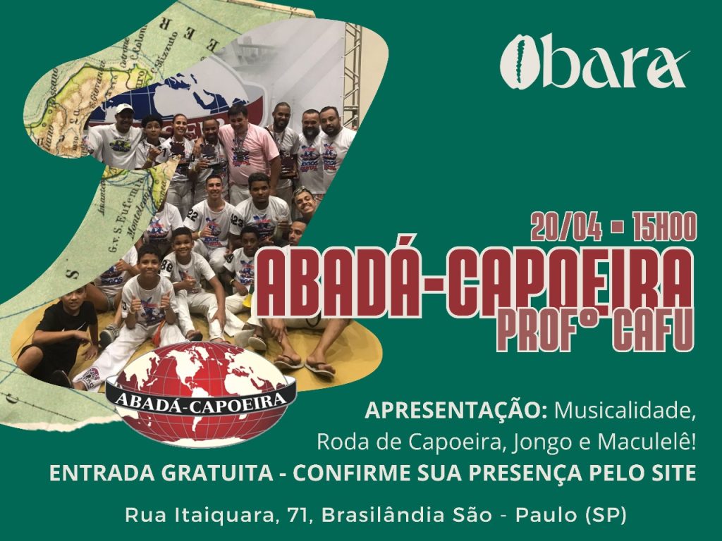 No dia 20 de abril de 2024 (sábado), a partir de 15h, o espaço recebe a Abadá-Capoeira (@abadacapoeirainstitucional) – Associação Brasileira de Apoio e Desenvolvimento da Arte da Capoeira, que tem como presidente e fundador o Mestre Camisa, para a comemoração de 20 anos Abadá Brasilândia – Projeto Fazendinha. Um dia para celebrar a capoeira como uma importante expressão cultural que é preservada e perpassada através dos mestres.