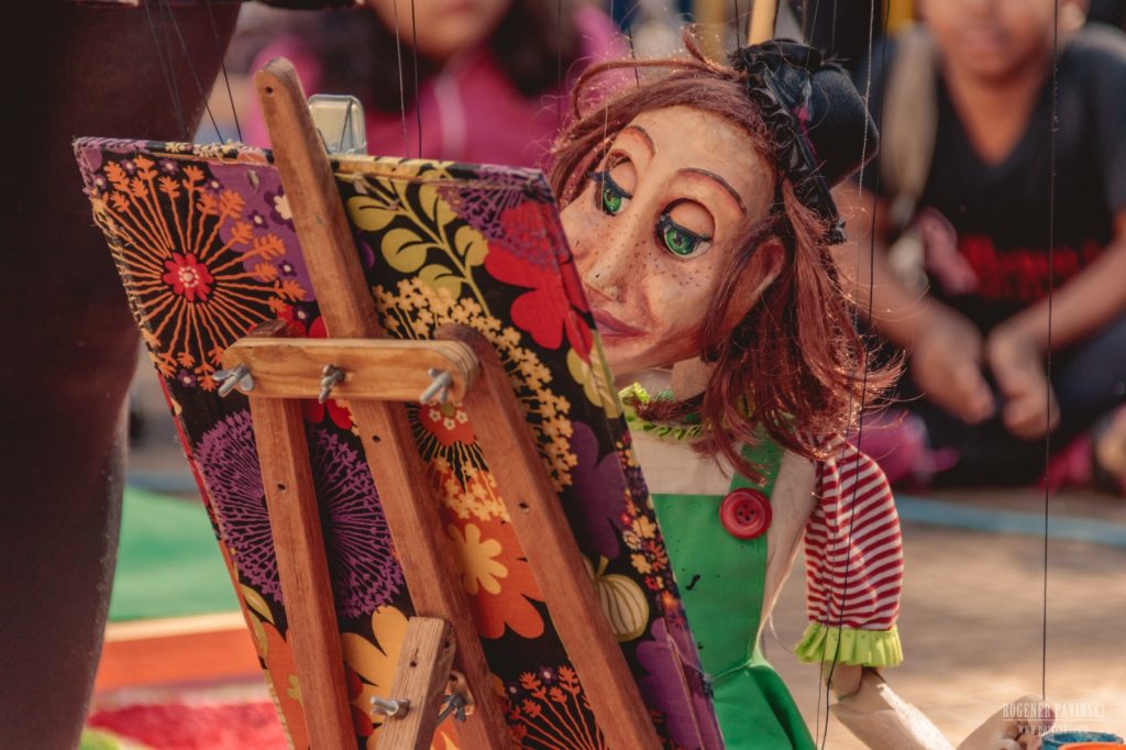 “Laia e o Voo da Imaginação” é protagonizado por Júlia Barnabé (@juliabarnabe_) e por Laia, uma marionete de 20 fios e olhos articulados, construída à mão em madeira pela própria artista, que em cena, faz pinturas ao vivo e encanta pessoas de todas as idades com sua ternura e vivacidade.