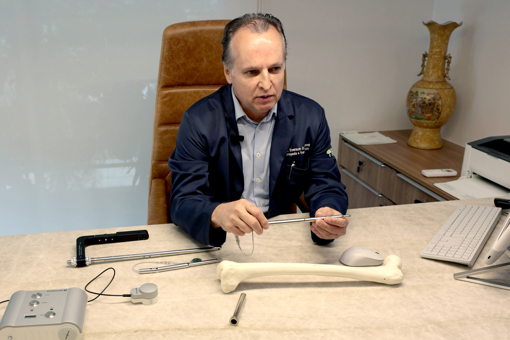 O especialista dinamarquês, Jan-Duedal Rölfing, destaca que, para que isso ocorra de forma segura, há instrumentos adequados que os cirurgiões utilizam durante a cirurgia, como um sistema de tubos que protege o osso e a cartilagem contra qualquer dano. Por meio desses acessos, o pino é introduzido dentro do osso e do canal medular. “A haste ficará dentro do osso, fixada com um parafuso na parte superior e dois na parte inferior. O receptor fica sob a pele, e a única coisa que o paciente precisa fazer em casa é posicionar o aparelho sobre a perna, no local marcado, onde está o receptor subcutâneo. Basta posicionar, apertar o botão e aguardar os impulsos. Com essa técnica, é possível crescer 1 milímetro de osso por dia, o que equivale a 3 centímetros em um mês”, destaca. O tratamento se divide em quatro fases: cirurgia, distração (alongamento diário), consolidação (fortalecimento do osso regenerado) e remodelação. A haste deve ser removida entre 12 e 18 meses após o implante, quando o novo osso já é capaz de sustentar o peso do corpo de forma natural.