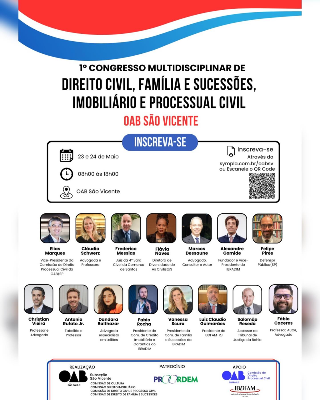 1º Congresso Multidisciplinar de Direito Civil, Família e Sucessões, Imobiliário e Processual Civil da OAB São Vicente