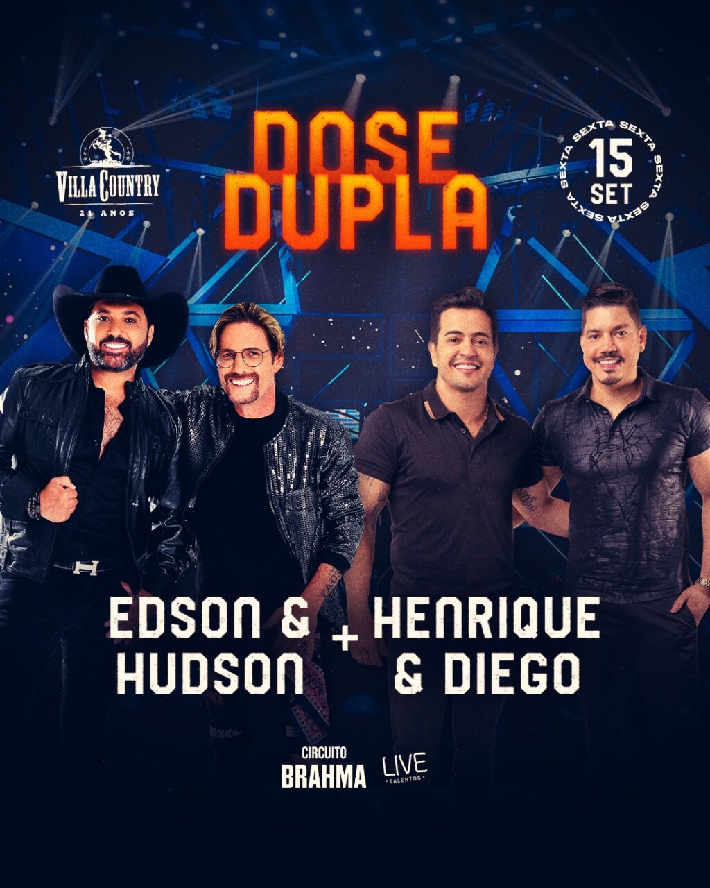 O Villa Country, a maior casa sertaneja da América Latina, prepara mais uma dobradinha de shows para que o público tenha uma noite memorável. Dessa vez, Edson e Hudson e Henrique e Diego apresentam seus shows de carreira no dia 15 de setembro de 2023 (sexta-feira).