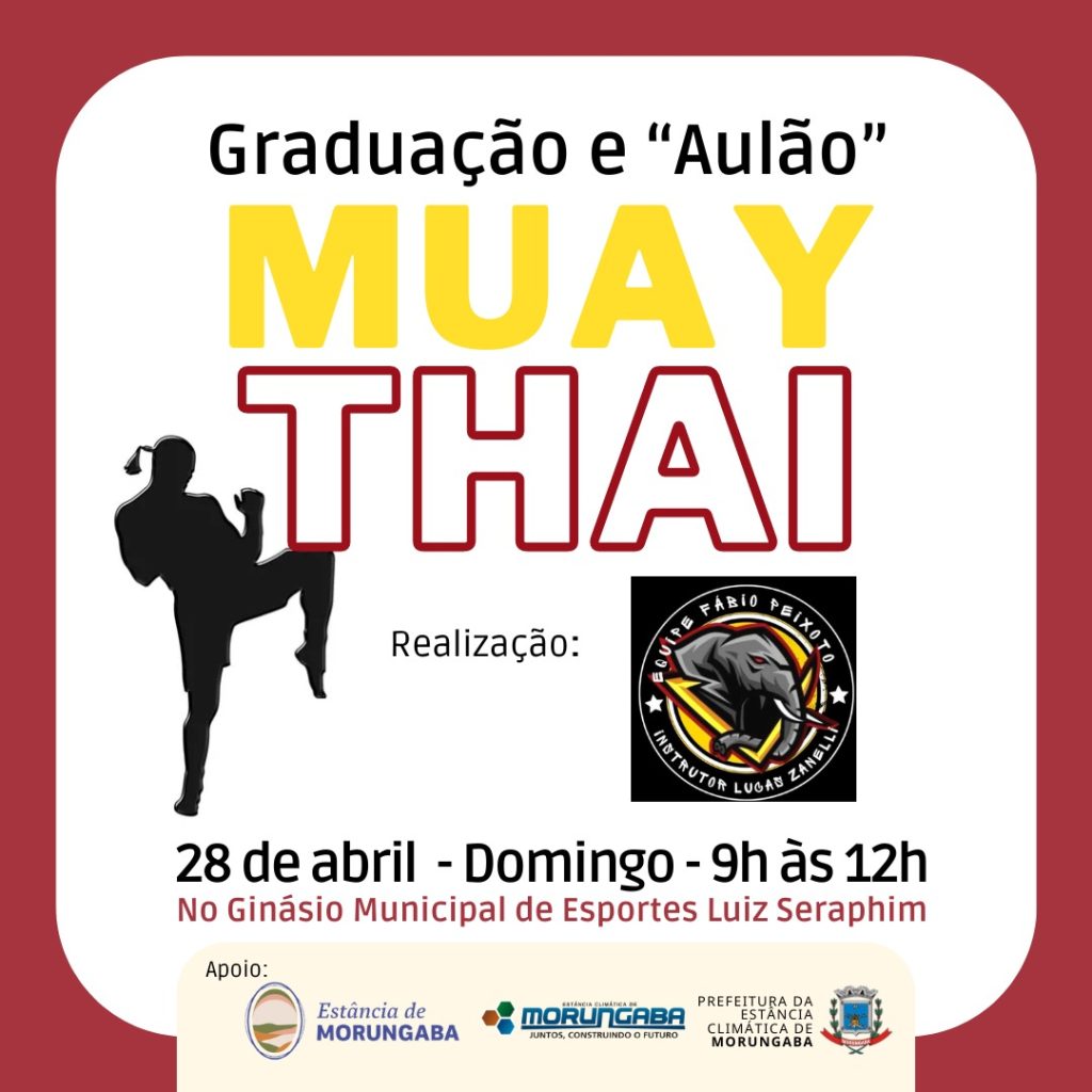 O Ginásio Municipal de Esportes Luiz Seraphim receberá a cerimônia de graduação e um “aulão” de Muay Thai, organizados pela academia Team Peixoto com o apoio da Prefeitura da Estância Climática de Morungaba. O evento é aberto ao público que poderá conhecer um pouco mais da arte marcial tailandesa.