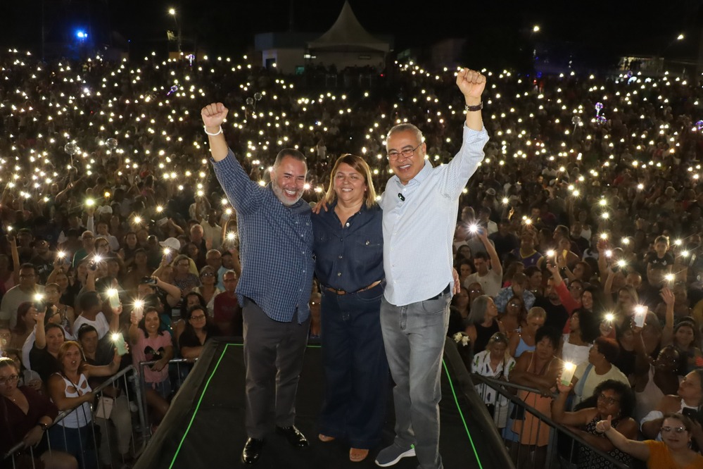 A primeira dama, presidente do Fundo Social e secretária de Inclusão e Desenvolvimento Social, Maria dos Anjos Assis Barros, foi a responsável por anunciar a atração principal da noite, chamando a dupla sertaneja. Maria acompanhou todo o show ali mesmo, de pertinho, com muita animação.