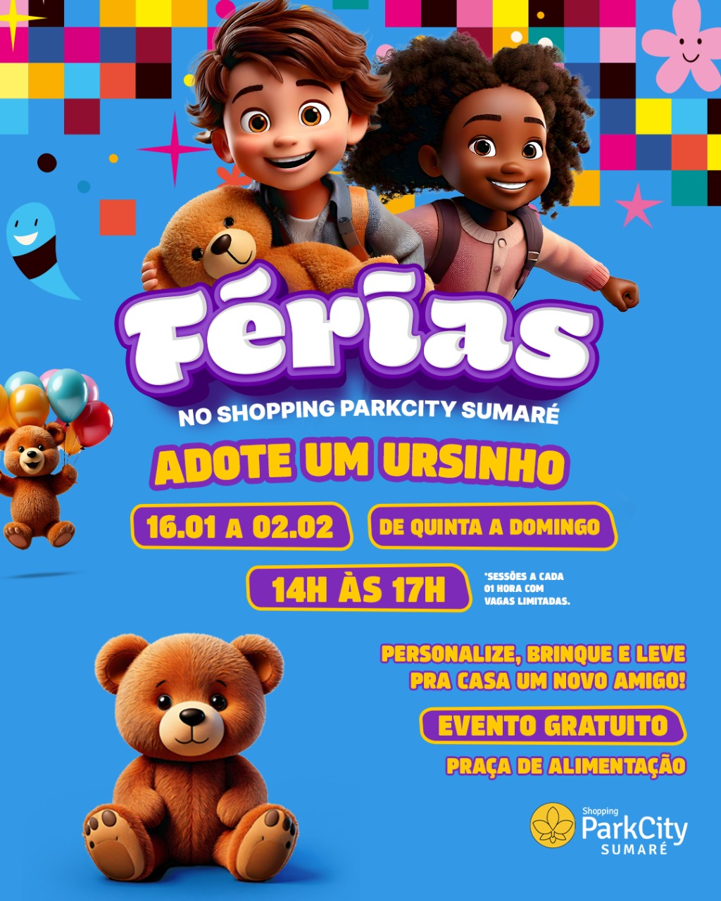 “Férias no Shopping ParkCity Sumaré – Adote Um Ursinho”.