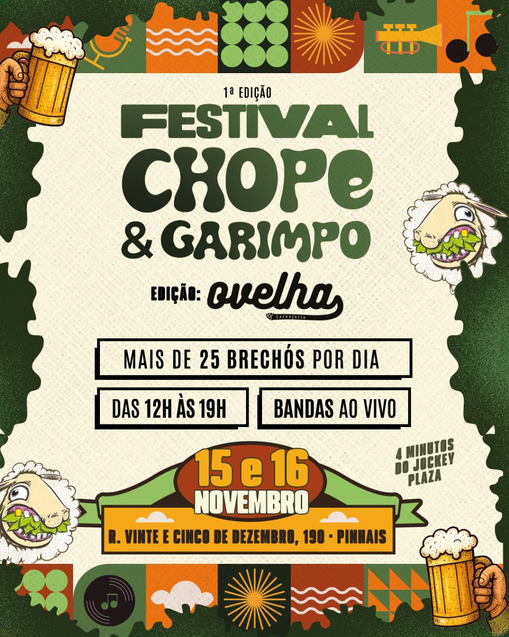 A primeira edição do Festival Chope e Garimpo apresenta uma programação que reúne chope artesanal, música ao vivo, gastronomia e uma feira de expositores voltados ao garimpo criativo. O evento acontece na Cervejaria Ovelha, em Pinhais, e se consolida como o novo rolê alternativo da região. Nos dias 15 e 16 de novembro, das 12h00 às 19h00, o Encontro de Brechós Saí do Armário marca presença com uma curadoria especial de brechós femininos, masculinos, além de produtos coloniais, velas, acessórios, artigos geek, itens voltados ao universo rock e peças exclusivas de pequenos empreendedores. No domingo, peças infantis entram em destaque nas araras.