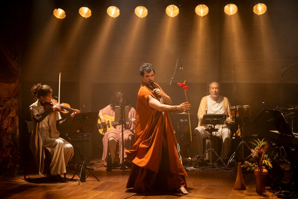 Com uma encenação concebida a partir de quatro cenas – Denúncia, Fe(me)nino, Milagre e Invenção, a proposta do espetáculo é contar “a história de como contamos nossas histórias”, afirma o artista que estará no palco acompanhado por uma banda de três músicos.