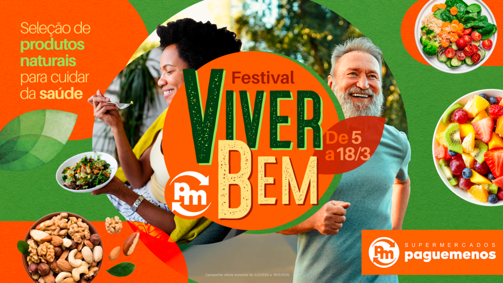 A busca por uma vida mais saudável nunca esteve tão em alta. Cada vez mais pessoas estão atentas à importância de bons hábitos e de uma alimentação equilibrada para o bem-estar físico, mental e emocional. Pensando nisso, a Rede de Supermercados Pague Menos realiza o Festival Viver Bem, uma ação que acontece de 5 a 18 de março e traz uma seleção especial de produtos para quem deseja manter uma rotina mais leve e nutritiva.