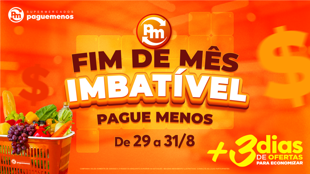 De 29 a 31 de agosto, acontece o Fim de Semana Imbatível nas 39 lojas físicas da Rede de Supermercados Pague Menos, trazendo uma seleção exclusiva de produtos com preços diferenciados, que vão desde os itens essenciais de mercearia até artigos de bazar.