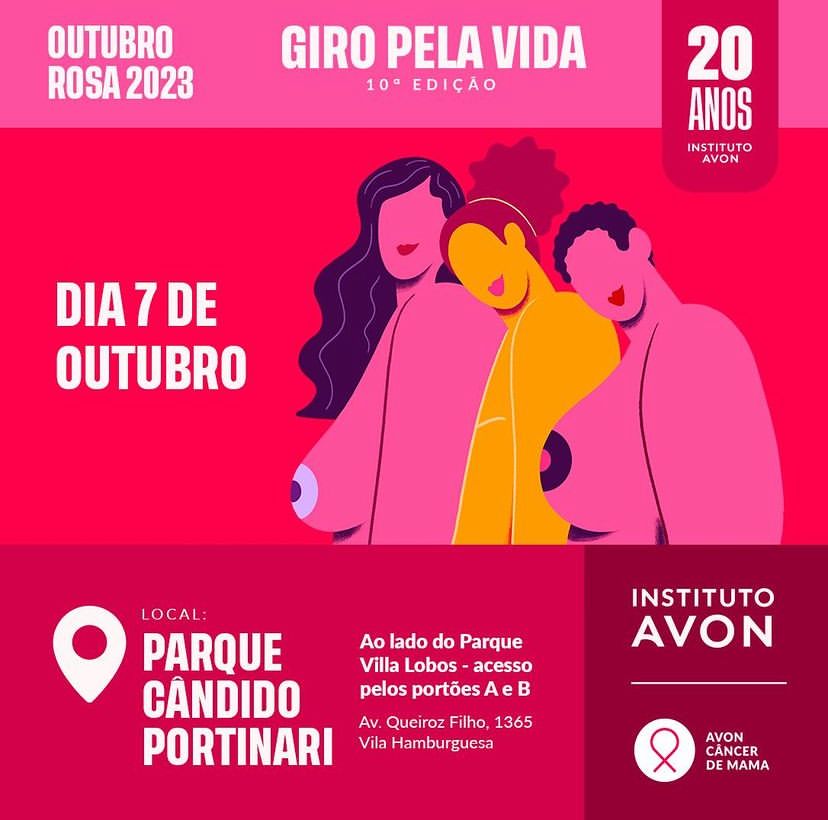 Para saber mais sobre a programação completa do Giro pela Vida, basta acompanhar as redes sociais do Instituto Avon ou acessar o site oficial do evento: https://www.giropelavida.com.br/