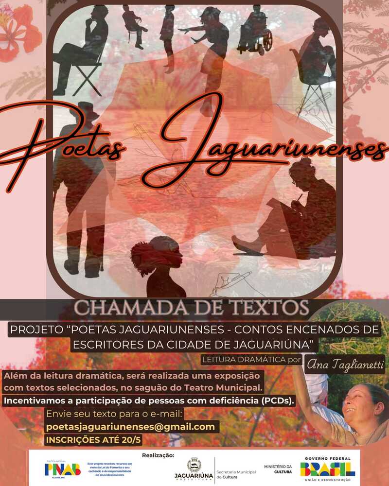 Jaguariúna se prepara para celebrar sua produção literária com o projeto “Poetas Jaguariunenses – Contos Encenados de Escritores da Cidade de Jaguariúna”, viabilizado por meio da Lei Aldir Blanc com apoio da Secretaria Municipal de Cultura. A iniciativa busca valorizar e dar visibilidade aos talentos locais por meio de um espetáculo cênico-musical e uma exposição literária.