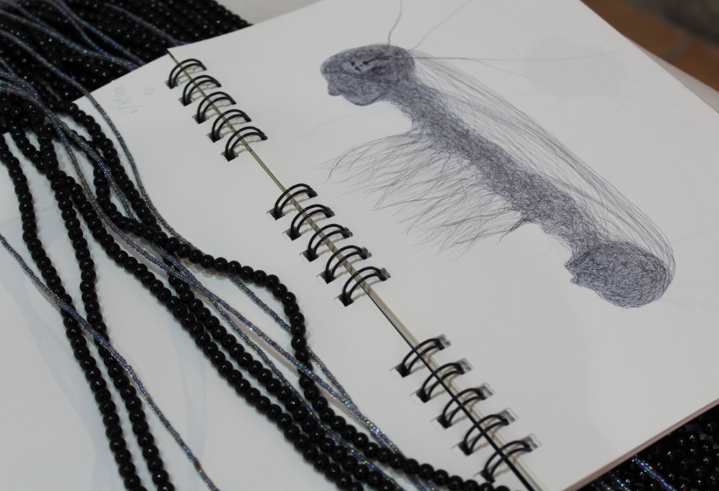 Sua produção de mais de 400 desenhos em caneta esferográfica em seus cadernos de artistas e folhas canson, irão transbordar nos espaços expositivos. Dentro de suas obras teremos desenhos em xerox, criando instalações visuais que podem ser observadas pela vitrine da galeria. A artista também apresenta os fios desenhados em cores na entrada do AT|AL|609, criando uma imersão sensorial, do calor ao frio das cores, dos rastros do lápis, a imaginações outras pelos fios em gestos.