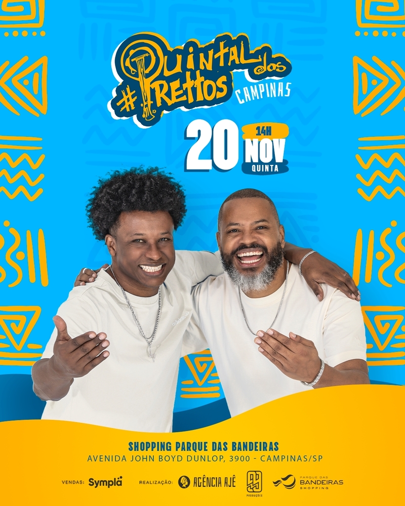 “Acreditamos que a música é uma das formas mais genuínas de criar experiências e aproximar pessoas. Receber o Quintal dos Prettos é celebrar a cultura e oferecer ao público um espaço plural, democrático e cheio de boas vibrações.”, destaca Rodrigo Cenatti, gerente de marketing do Shopping Parque das Bandeiras.
