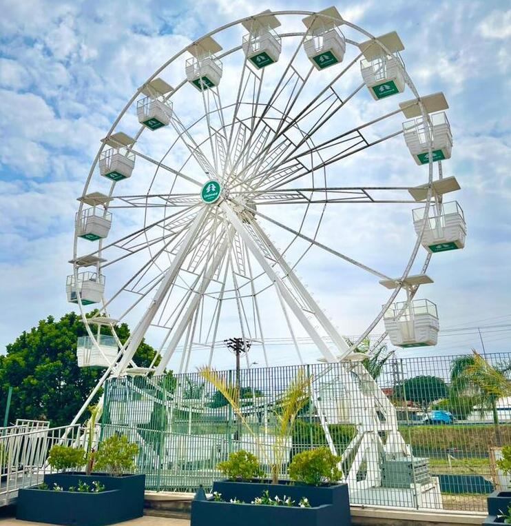 Com 16 gôndolas, sendo 15 para até quatro pessoas cada e uma adaptada para pessoas com deficiência, a Roda-Gigante oferece uma vista privilegiada da cidade e promete momentos de pura emoção. O funcionamento será de segunda a sábado, das 14h às 22h, e aos domingos, das 12h às 20h, no estacionamento térreo. Cada ciclo completo tem duração de quatro a cinco minutos, com quatro voltas contínuas, garantindo uma experiência encantadora do início ao fim.