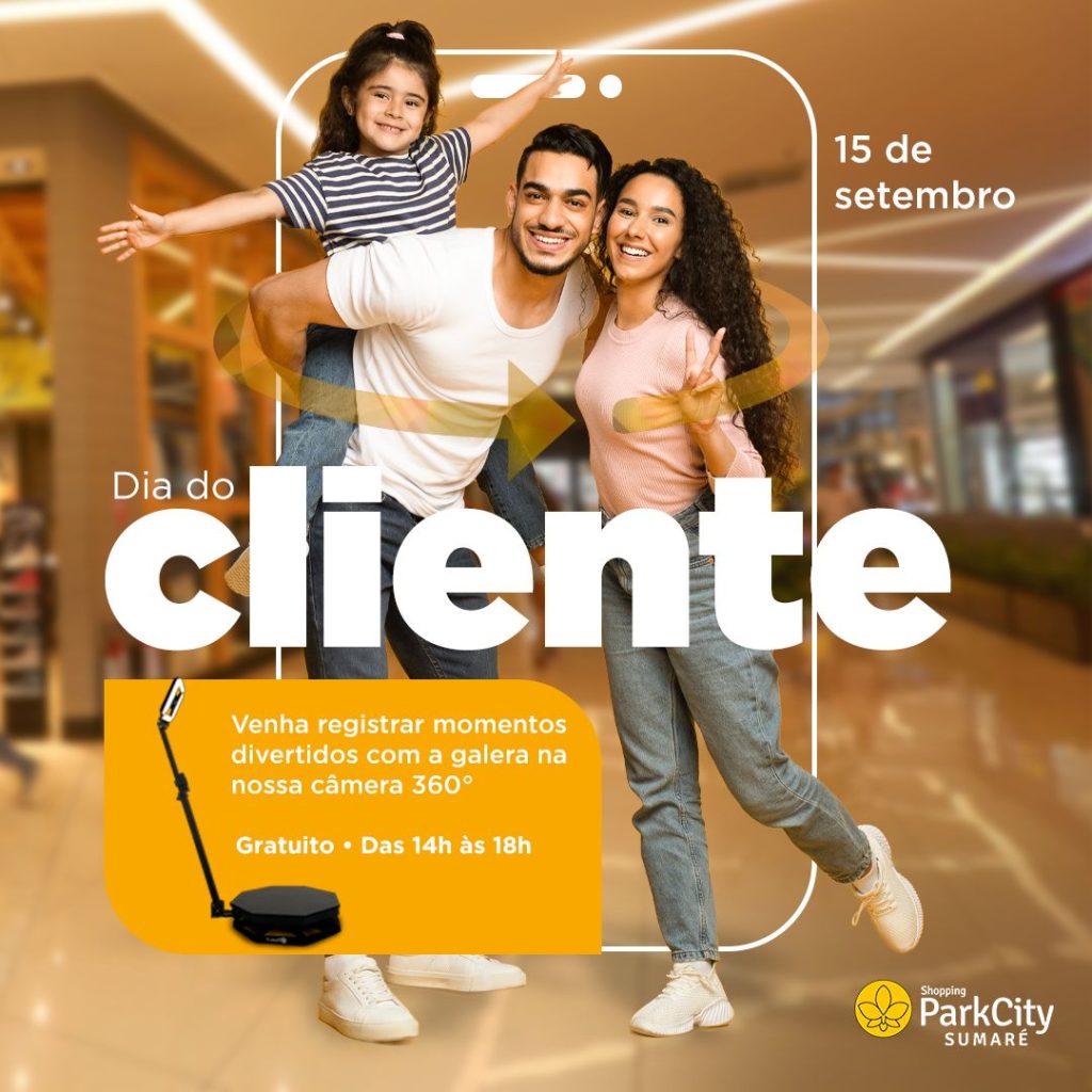 O Shopping ParkCity Sumaré celebra o Dia do Cliente, comemorado neste domingo, 15 de setembro, com uma atração divertida, gratuita e disponível a todos que estiverem no empreendimento. Das 14h às 18h, os clientes poderão fazer um vídeo em uma câmera 360, instalada no lounge em frente à loja Life by Vivara.