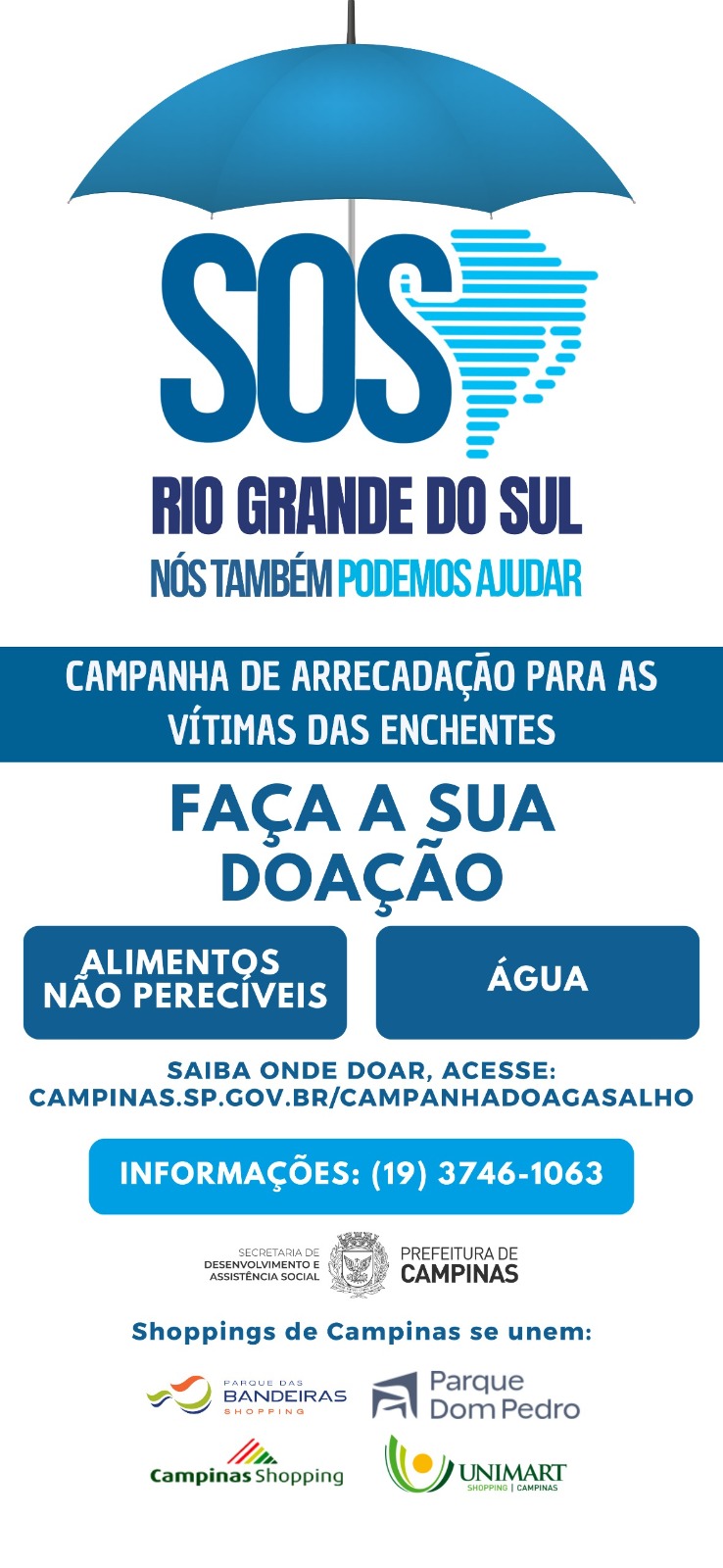 Em clima de cooperação, outros shoppings se unem ao Bandeiras para ampliar a rede de arrecadação e assegurar que mais famílias possam começar a reconstruir suas vidas. São eles: o Shopping Dom Pedro, Campinas Shopping e Unimart que estarão unidos nessa ação.