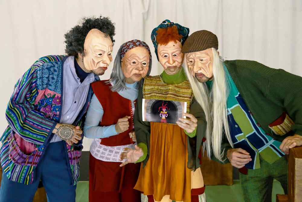 E o espetáculo pode ser considerado um jogo entre atores e plateia? Tiche afirma que sim. “Ele brinca com palavras, com os movimentos e os gestos, por meio de três tipos diferentes de máscaras, feitas por atrizes e atores que se aventuram. Entregamos ao público tudo o que ele precisa para contar a si mesmo a história que alinhavamos diante dele. Ou seja, o espetáculo vai desvendando o que está por trás de uma grande metáfora construída ali, diante da plateia.”