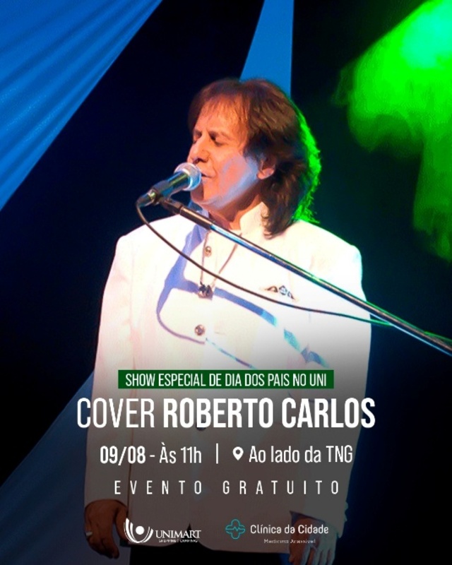 O Unimart Shopping Campinas preparou uma programação imperdível para comemorar o Dia dos Pais, que reúne diversas opções de entretenimento gratuitas. No dia 09 de agosto (sábado), o empreendimento recebe o cantor Roberto Guimarães, artista que homenageia Roberto Carlos. A apresentação contará com grandes hits do rei da música romântica, como Jesus Cristo, Detalhes, Como É Grande o Meu Amor Por Você, Como Vai Você, Por Você, entre outros. O show será realizado a partir das 11h, no espaço de evento ao lado da loja TNG.