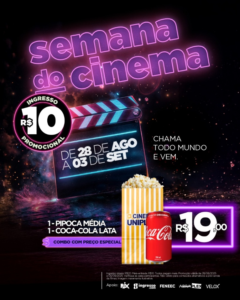 No Unimart, a ação acontece no Cine Uniplex, onde os visitantes poderão conferir os principais filmes em cartaz com preço promocional e ainda aproveitar descontos exclusivos na bomboniere, tornando a experiência ainda mais completa.