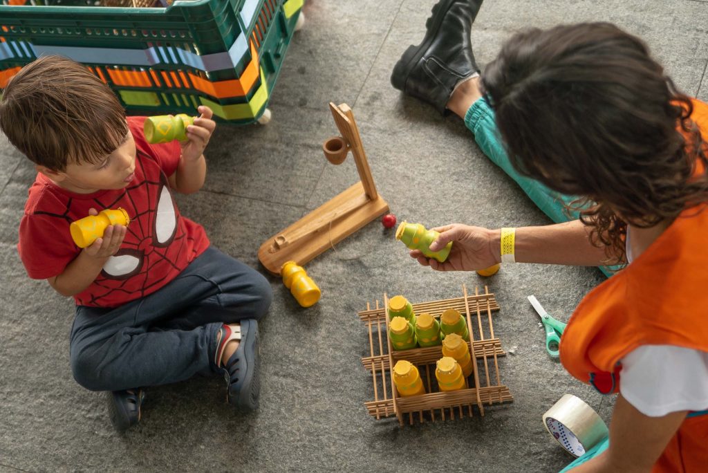 O Coletivo Aqui que a Gente Brinca! espalha uma série de caixas com os mais diversos trecos e objetos para que as crianças possam manuseá-los e brincar com eles. O conteúdo das caixas desperta, também, a memória da infância dos adultos, fazendo com que a atividade seja direcionada para toda a família.