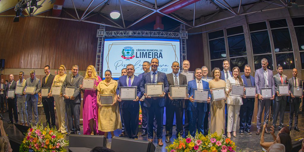 Os 21 vereadores eleitos para a legislatura 2025-2028, bem como o prefeito Murilo Félix (PODE) e o vice-prefeito Fabiano D’Andréa (PODE) tomaram posse em solenidade da Câmara Municipal de Limeira realizada nesta quarta-feira, 1º de janeiro. A cerimônia ocorreu no Salão Social do Nosso Clube, com a presença de autoridades, familiares, amigos e apoiadores.