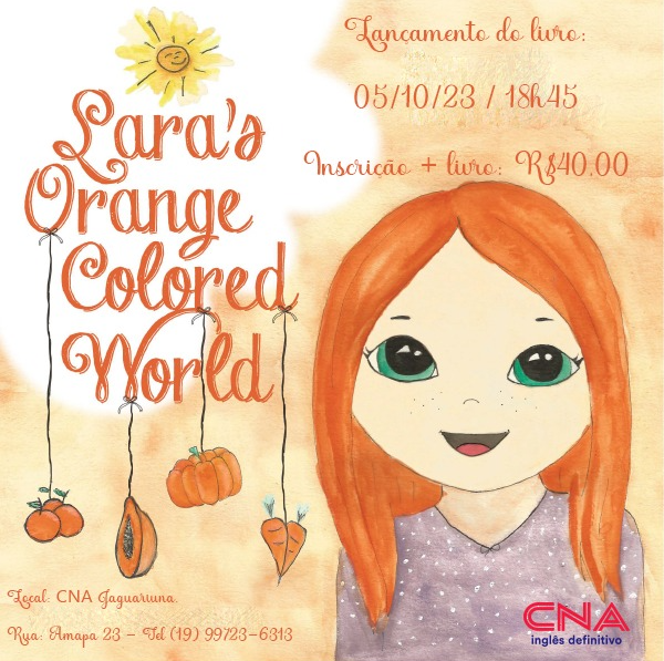 O livro O Mundo Laranja de Lara, da escritora Carol Pepe, ganhou uma versão também em inglês. Lara’s Orange Colored Word será lançado nesta quinta-feira, dia 5 de outubro, em evento no CNA Jaguariúna com a presença da autora.